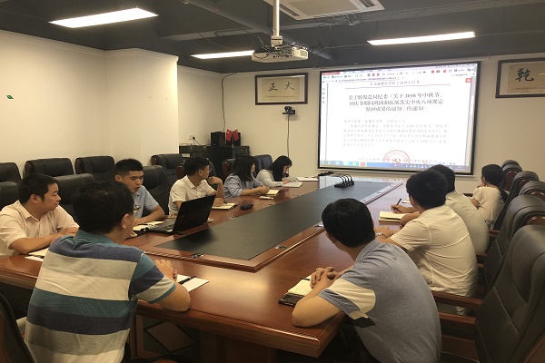 9月19日,广州分公司党支部组织专题学习,集中学习了集团纪委《关于转发总局纪委<关于2018年中秋节、国庆节期间巩固和拓展落实中央八项规定精神成果的通知>的通知》。